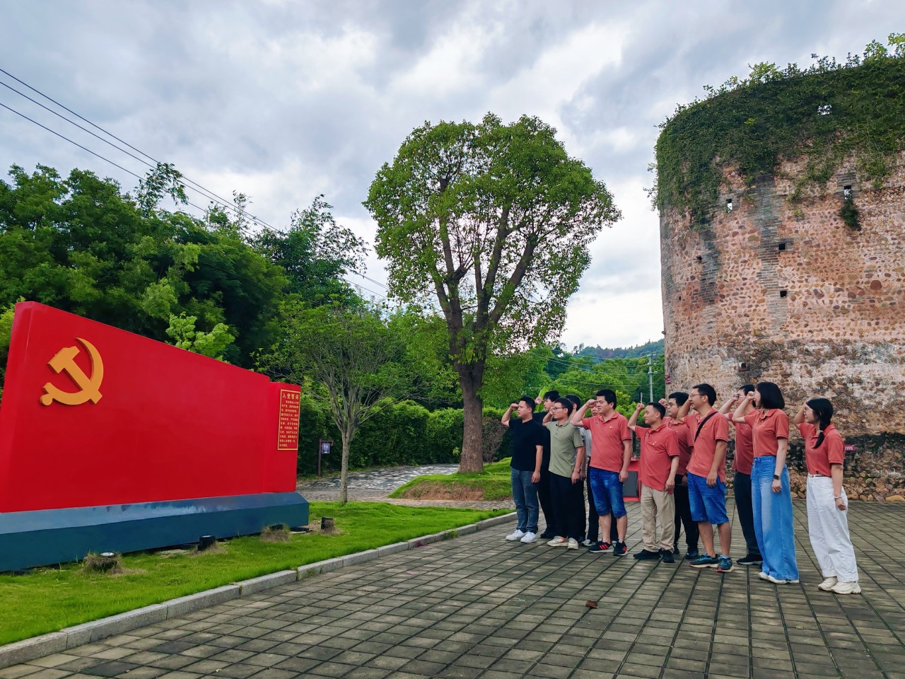 參加活動(dòng)的黨員同志們一同參觀了廣東省委機(jī)關(guān)舊址——紅圍,通過觀看宣傳欄里留下的珍貴歷史照片和文字記載的歷史變遷,了解這座近200年歷史的圍樓,歷經(jīng)歲月的滄桑與戰(zhàn)火的洗禮至今仍然屹立不倒,感受在那血雨腥風(fēng)的歲月里,中共廣東省委從這里發(fā)出的紅色電波,保持著與黨中央的密切聯(lián)系,指揮南方地區(qū)的抗日戰(zhàn)爭(zhēng)工作。隨后,大家在紅圍前,面對(duì)黨旗莊嚴(yán)地舉起右拳重溫了入黨誓詞,緬懷老一輩革命先烈的崢嶸歲月,感悟先輩不怕犧牲的英雄事跡,激發(fā)黨員奮斗精神和干事創(chuàng)業(yè)動(dòng)力。